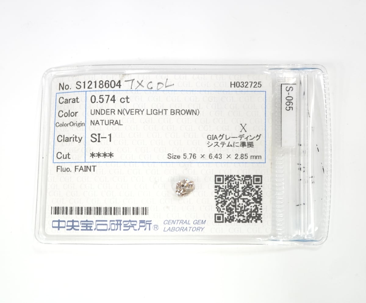 【ソーティング付】【0.574ct】ダイヤモンド(VERY LIGHT BROWN) 5.76×6.43×2.85mm ルース(裸石)