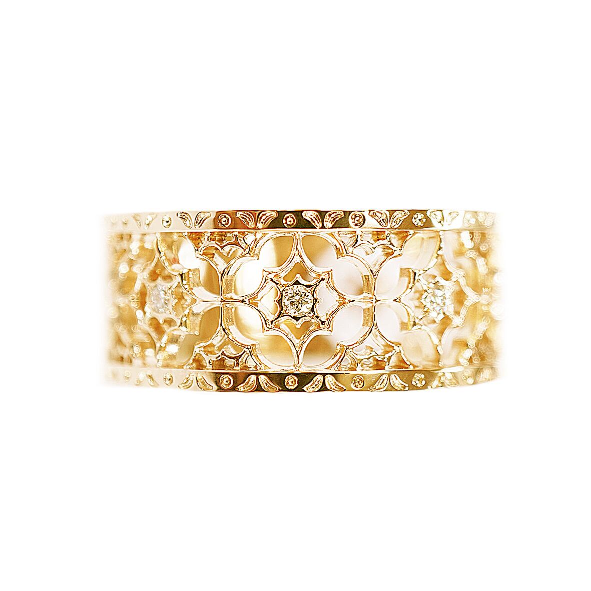 ◆受注生産◆【0.07ct】ダイヤモンド K18 透かし模様 ワイドリング