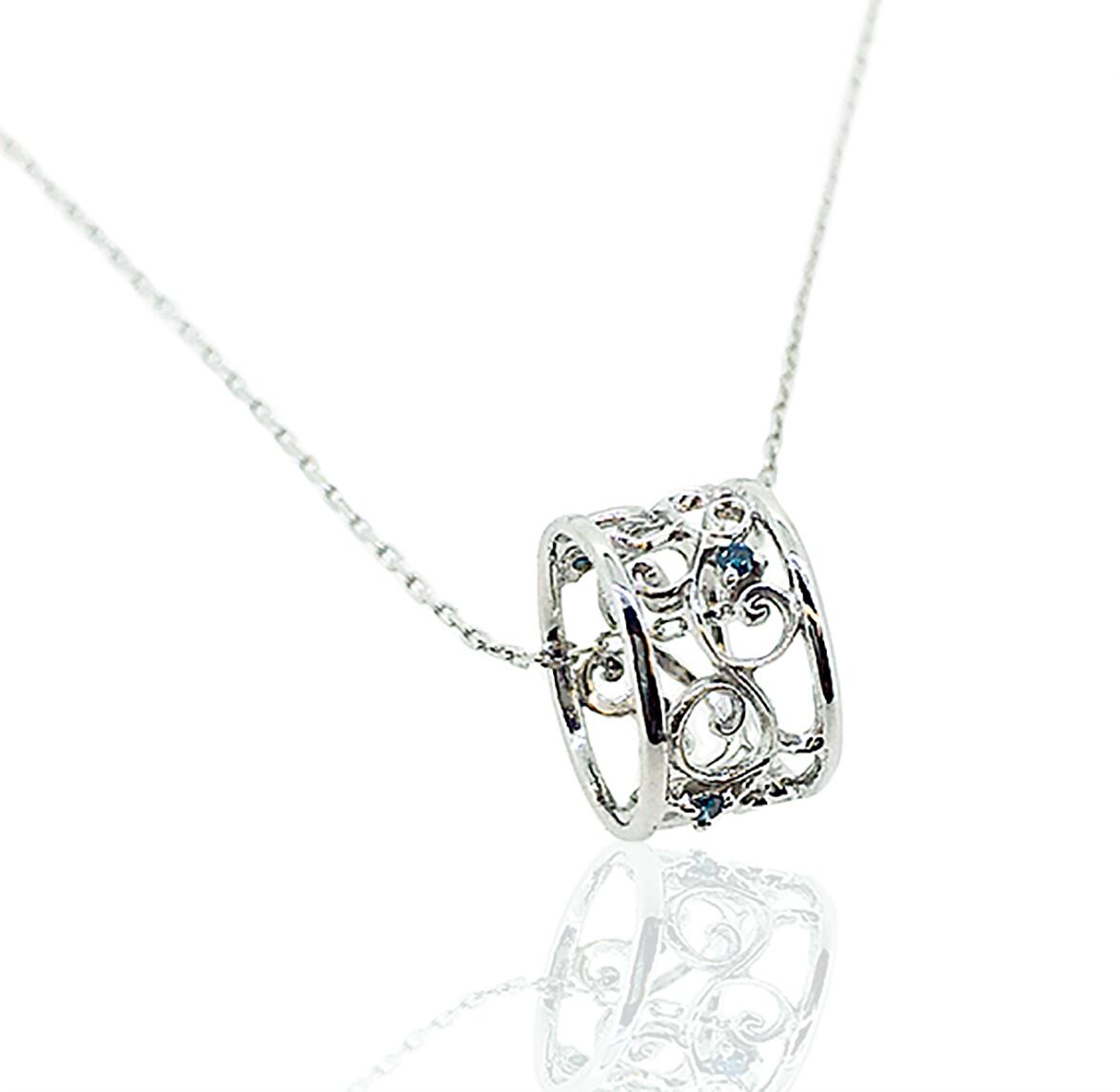 取り外しが可能なアラベスク模様のエタニティーペンダント。