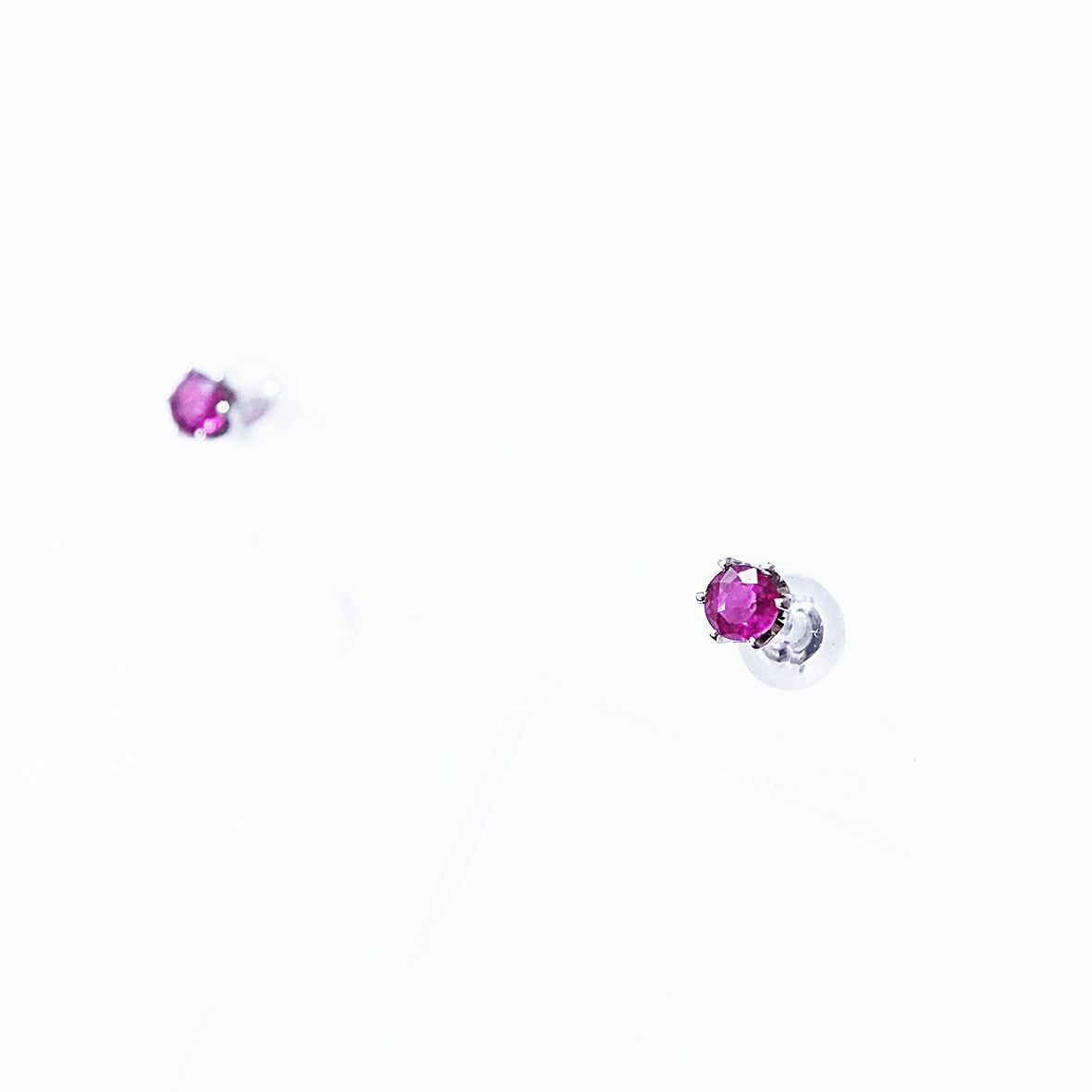 耳元でさりげなく輝く、天然ルビーのスタッドピアス。