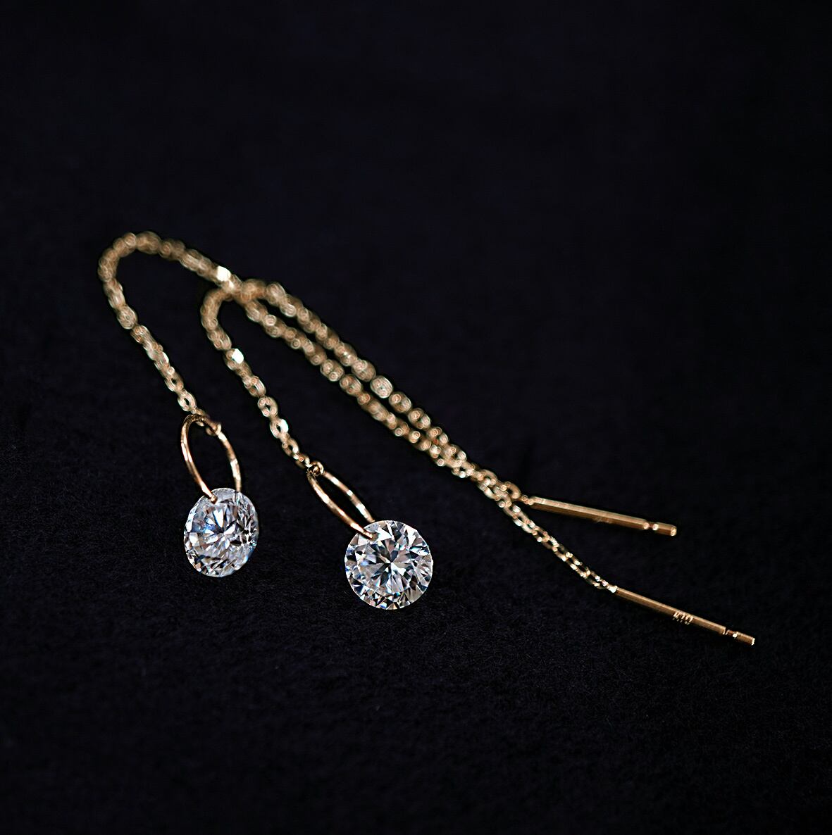光が反射し、キラキラと輝くキュービックジルコニアが揺れる、