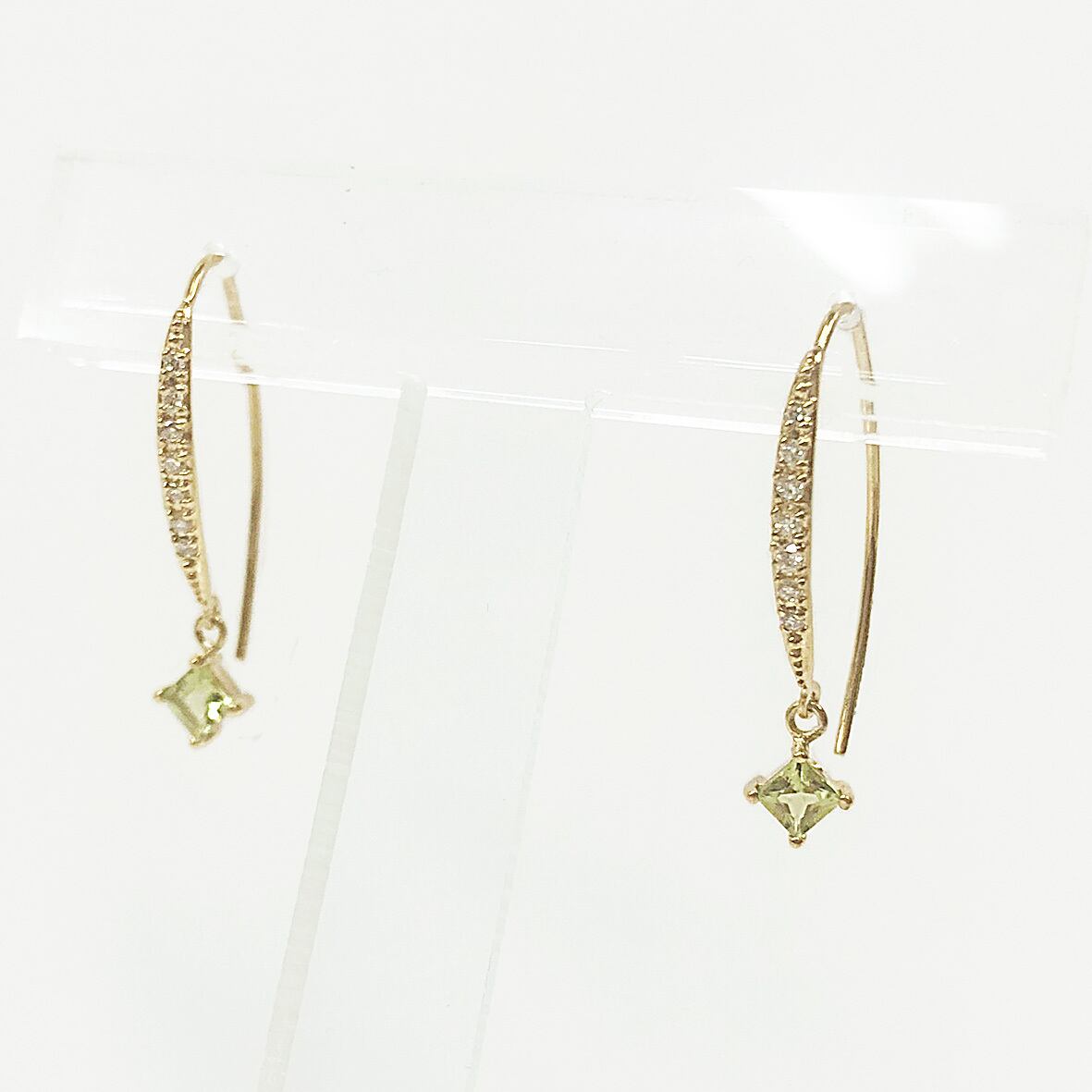 ◆一点限定◆【K18YG】ペリドット×ダイヤモンド オリジナルフックピアス 天然石 8月誕生石