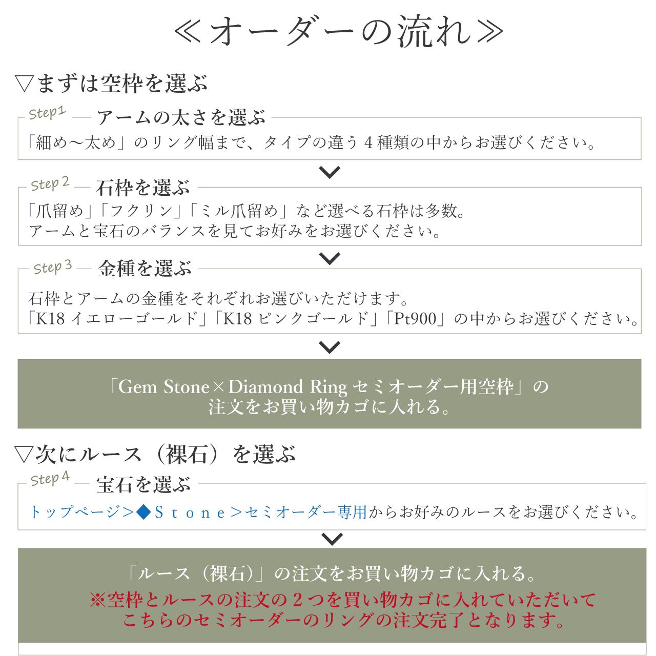 ※こちらのセミオーダーのご注文は、①セミオーダー専用空枠②セミオーダー専用ルースの2つの商品をお買い物カゴに入れていただきご注文が完了となります。